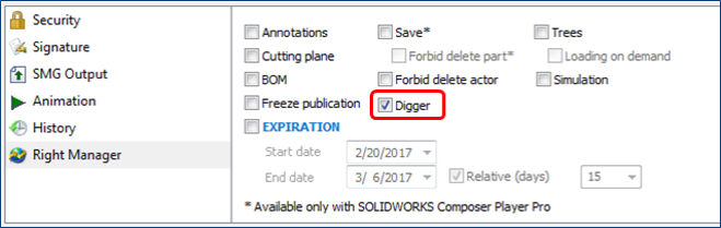 在SOLIDWORKS Composer 2018本功能又得到了增強(qiáng),增強(qiáng)的目的是對(duì)該功能進(jìn)行權(quán)限控制,以便在某些技術(shù)保密性強(qiáng)的產(chǎn)品中,禁止開啟該功能。