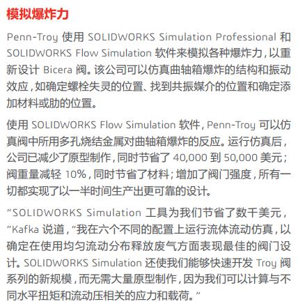 Penn-Troy Manufacturing 利用 SOLIDWORKS設(shè)計、仿真、 CFD 分析、 PDM 和技術(shù)交流解決方案來縮短設(shè)計周期、提高質(zhì)量、減少原型并擴展其專業(yè)水和防爆安全閥系列。